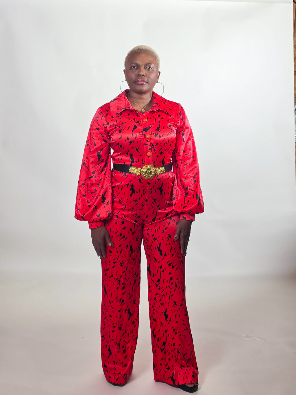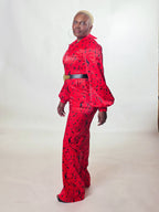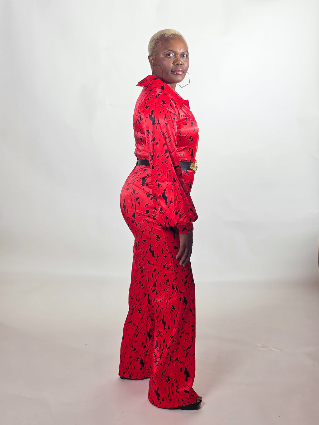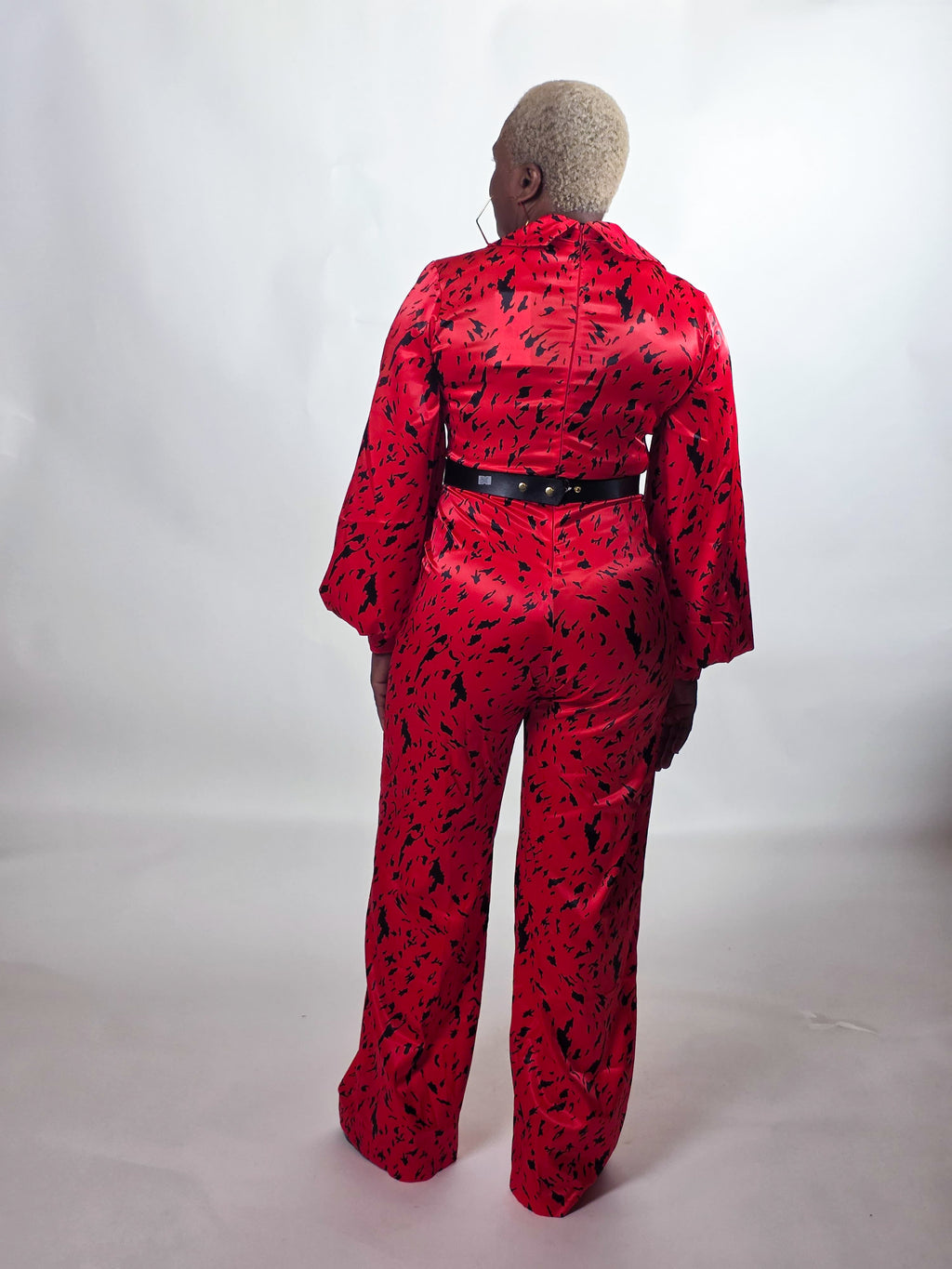 The Ashley Red Jumpsuit combines beautiful quality material with distinctive red and black patch details inside. It features long sleeves and a belt that enhances your waistline for a refined silhouette. A discreet back zipper ensures a seamless fit, while the free-flowing legs provide comfort and mobility. This jumpsuit perfectly balances style and functionality for versatile wear.