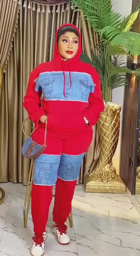 The Maddie Autumn Winter Set expertly blends comfort and durability with a breathable, quick-dry cotton-spandex fabric that resists pilling for long-lasting wear. This casual two-piece includes a hooded top and long pants, both featuring street-inspired design elements and sturdy denim accents on the chest and knees. Practical pockets on both top and pants enhance functionality, while the soft yet tough material ensures comfort and resilience, making it ideal for cooler seasons and everyday use.
